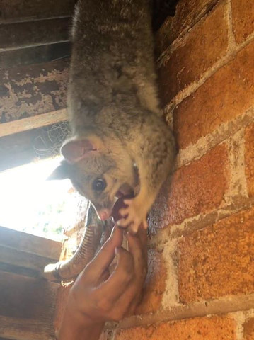 I had a close encounter with a possum who had taken up residence in the roof of a room in my hostel in Toowoomba, which is inland Queensland. This was a very friendly possum and loved to be fed by us humans, who would hand-feed it a variety of fruit!