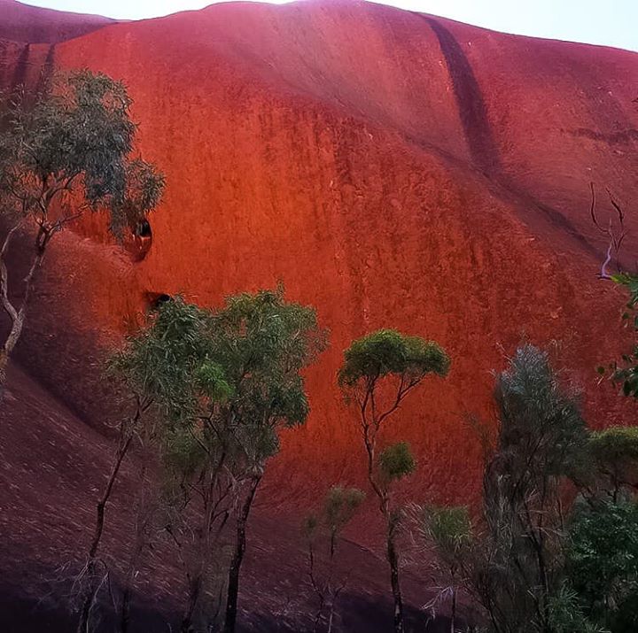 We rose extremely early the following morning, this time driving to the sunrise viewing point and witnessed the sun slowly climbing up beside the rock, revealing magical colours in the sky and a flaming red Uluru.